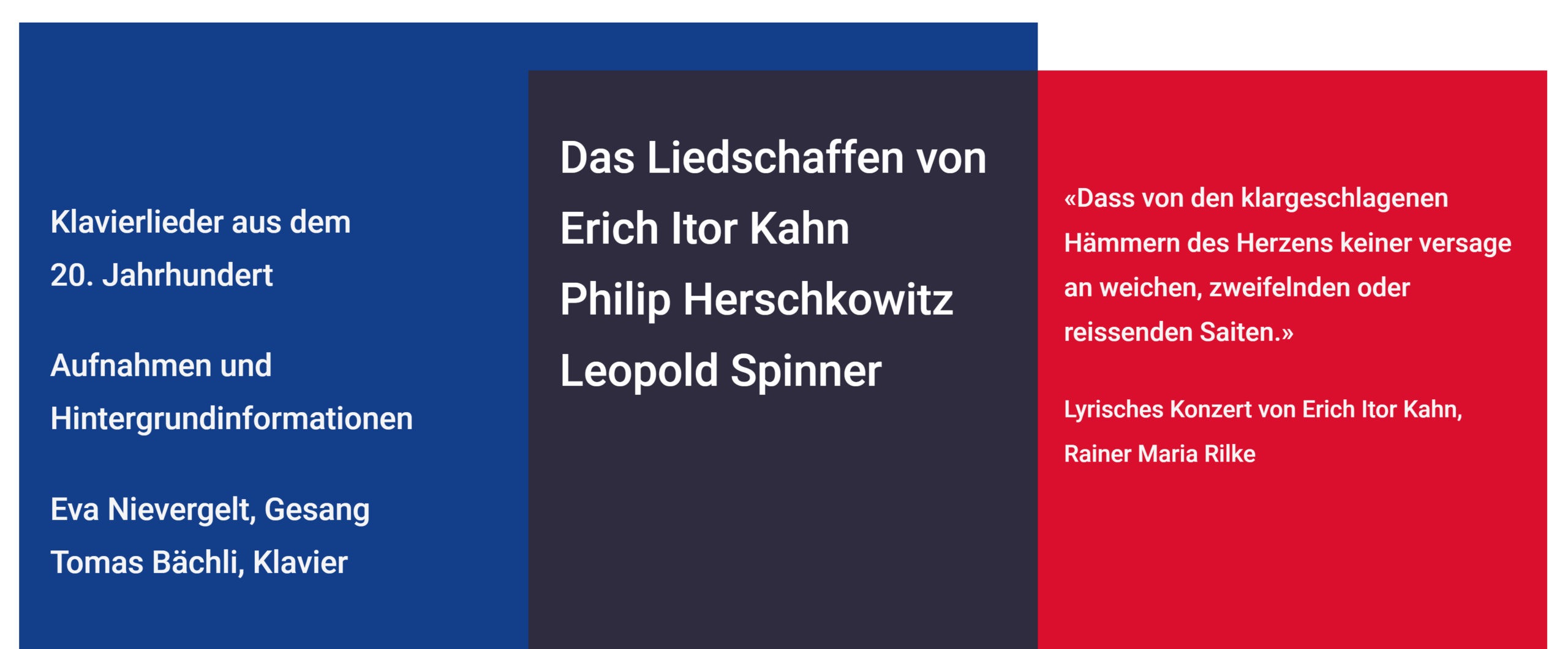 Auf der Website Kahn-Herschkowitz-Spinner aus dem Jahr 2023 können Sie Aufnahmen des Liedschaffens von Erich Itor Kahn, Philip Herschkowitz und Leopold Spinner hören.